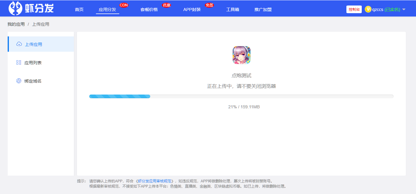 2.app分发平台目前比较多,app上线的难度也各有不同,大部分app分发平台都是需要收费的,一般按照下载次数收取,平均每次下载收费0.01元-0.1元不等,其实我们对收费也可以理解 ,毕竟运营下去是需要运营成本的比如下行流量费用 存储费用 服务器费用 cdn加速费用 开发费用等等 。在这里我推荐月租分发1000元应平台,使用七牛云云存储 cdn加速 安全稳定,价格适中 。适合中小型的开发者进行app云测服务。